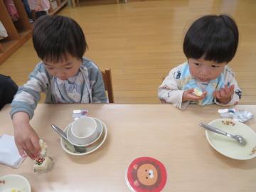2歳児のお友だちは、初めてプチケーキをいただきました。