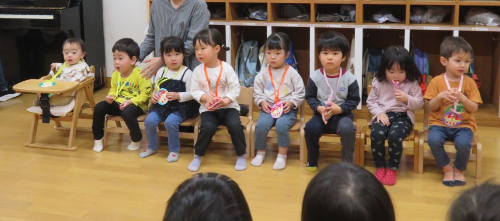今月は2歳児のお友だちの誕生者が多く、7人もいました。