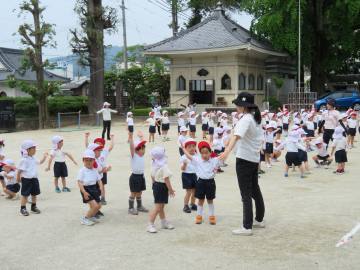 年中さんはかっこいい忍者になるために修行中。忍者になり切って体操する年中さんです。