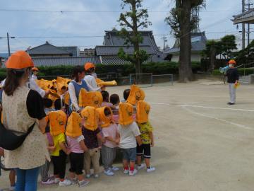 園では毎月地震や火災の避難訓練を行っています。今月は地震の避難訓練がありました。