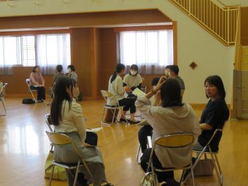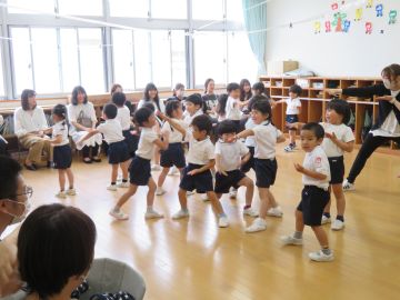 簡単なルールのある遊びとして、変形版「フルーツバスケット」を楽しみました。素早く移動したり、真ん中で次に移動するものを言ったりすることもできました。