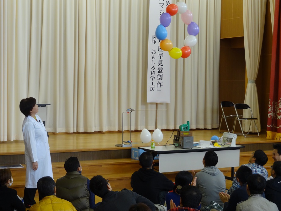 『親子で楽しめるサイエンスマジックと星座早見盤製作』と題して、おもしろ科学工房の三浦先生と美術博物館の下平先生にいろいろ教えていただきました。子どもと一緒に考えながら実験してみるのも楽しそうなものでした。