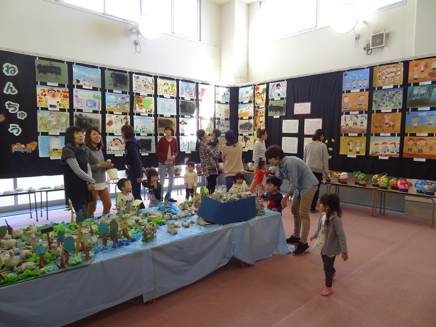8日の日曜日には地域公開をしました。同時期に行われていた郡展を見て園に立ち寄られたご家族もあり、日曜日の園舎内も結構にぎやかでした。園児作品展だけでなく、PTAの作品展も楽しんでいただけました。