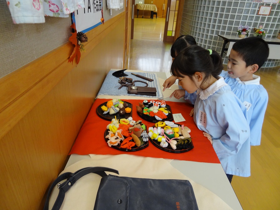 さくらんぼさん親子にも公開。園児の作品に触れていただきました。