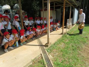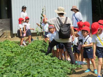 暑い夏の間、芋畑はどうなっているのかな?年長さんが畑の様子を見にバスで出かけました。