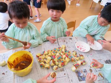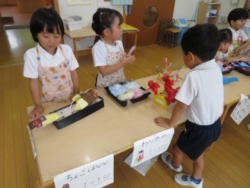 輪投げにたこ焼き、チョコバナナ、わたあめ・・・沢山のお店ができたりお店で売る物を作って楽しんでいます。