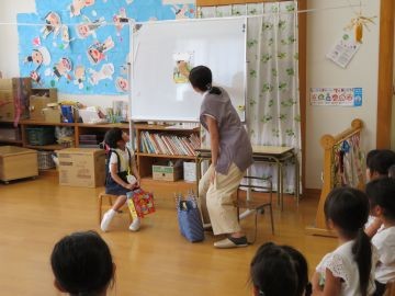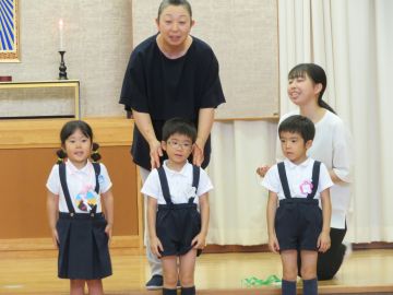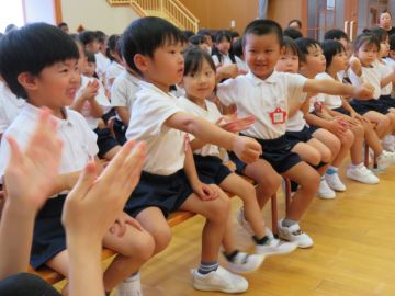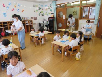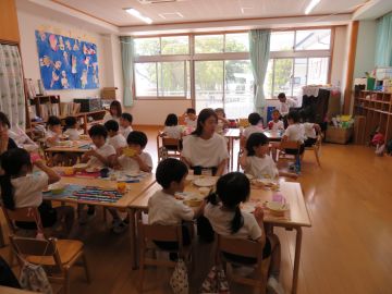 今月お祝いしてもらったお友達は、年長さん4名、年中さん3名で、年少さんはいませんでした。