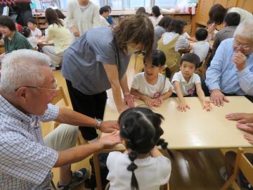 同じグループのお友だちや祖父母の方とも「おせんべやけたかな」をしました。