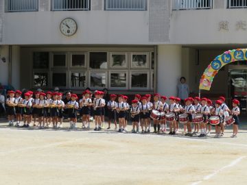 憧れのリズムパレードです。制服に赤いベレー帽を被ったこども達は大きく頼もしく見えました。