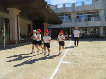 力強く走れるようになってきました。競い合うことも楽しく感じられるようになってきた年長さんです。
