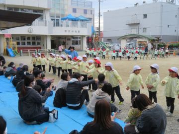 年長さん達と♪やきいもぐーちーぱー♪をうたいながらジャンケンゲームもしました。