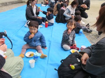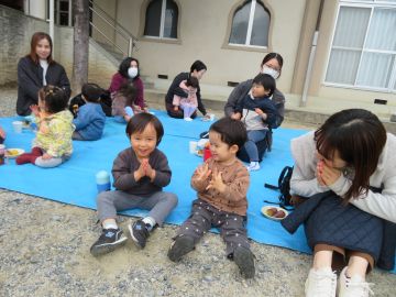 年長さんが収穫したサツマイモをみんなで焼き芋にしました。さくらんぼさんたちにもお裾分け。