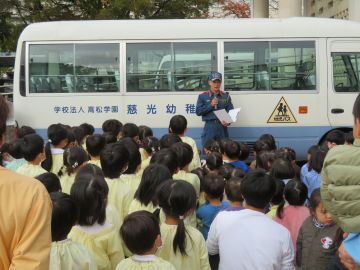 そろそろ消防署に戻る時間です。みんなでお礼を言って見送りました。