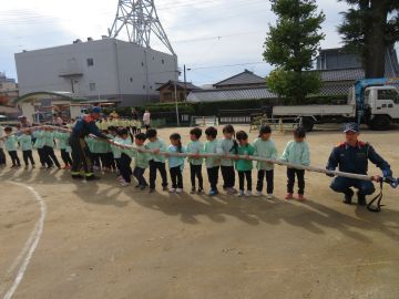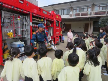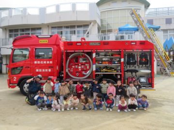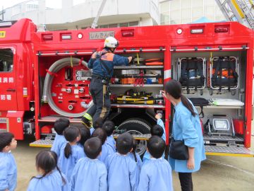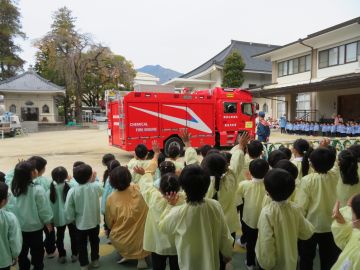 園庭には化学消防車がきてくれました。