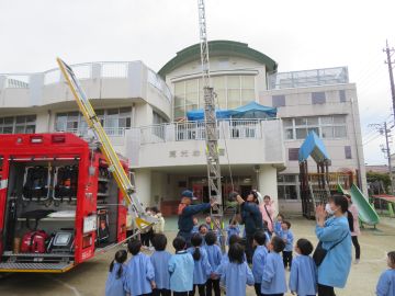 はしごも搭載しており、のばして見せて下さいました。園舎の一番上まで届くそうです。