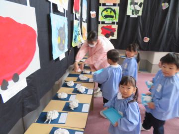 大きいお友だちは、順番がくるまで静かに並んで待っています。