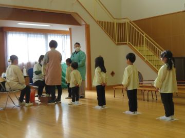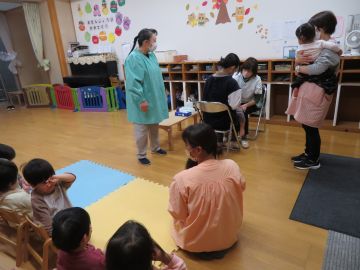 内科は佐野先生にお越しいただきました。0.1歳児は、先生がお部屋に来てくださり、検診を行いました。