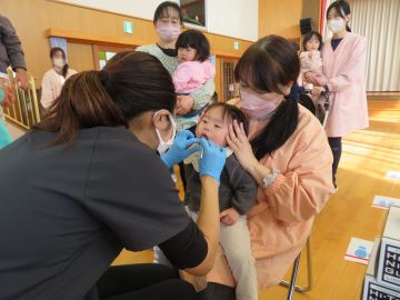 歯科は、池田先生がお越しくださいました。小さなお友だちは先生に抱っこで診てもらいました。