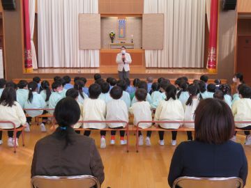 園長先生のお話では、インフルエンザや風邪が流行っている時期に元気に過ごすためにどう生活したらいいのか教えていただきました。