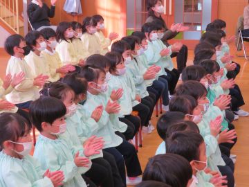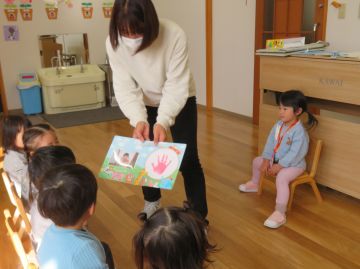 各クラス毎に誕生会の歌をうたってお祝いしたり、お誕生日カードを先生から見せてもらっています。