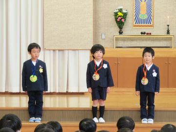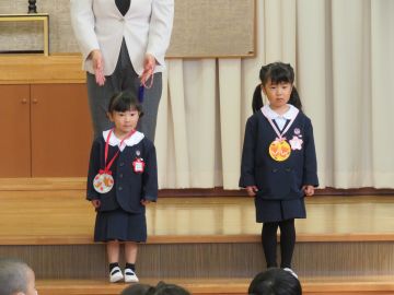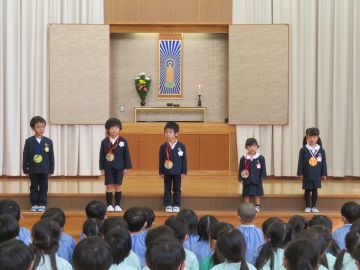 今月の誕生者は5名でした。園長先生からペンダントをかけていただきました。