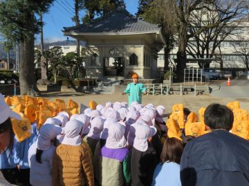 園庭では点呼の後、園長先生から訓練についてお話をしていただきました。