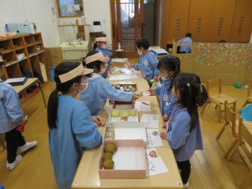 パン屋さんさんごっこをする年少さん。