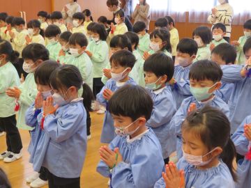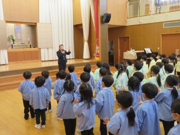 園長先生からお休みの間の約束事をお話しいただき、園歌をみんなで歌いました。