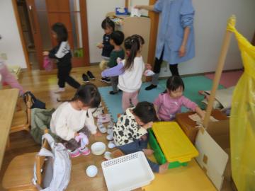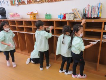 ロッカーや棚、玩具の大掃除をしました。年長さんは床掃除もしてくれていました。