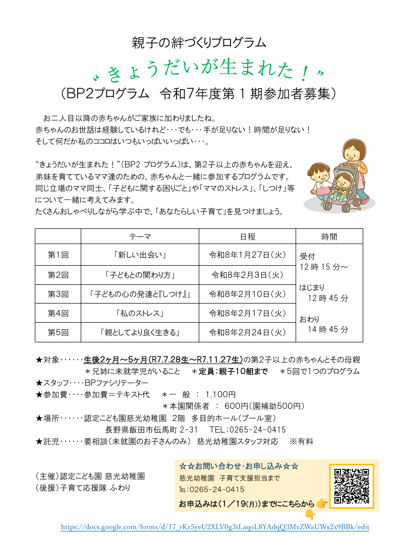 定員10組のところ、残りあと2組となっております。ベビープログラムは参加できる時期が限られていますので、是非この機会にご参加ください。詳しい内容は下の画像をご覧ください。