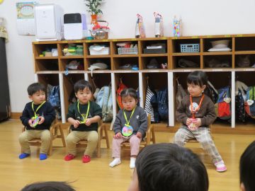 未満児のお友だちは、たんぽぽの保育室で誕生会を行いました。