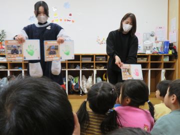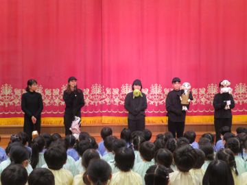 人形劇は5人のお母さんで人形を動かしたり、音を出したり、物を動かしたりして演じて下さっていました。