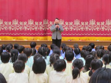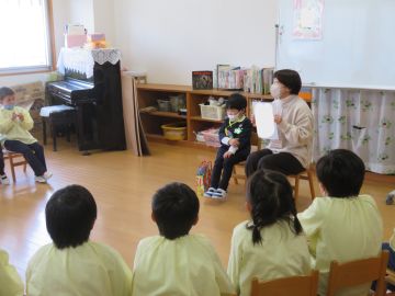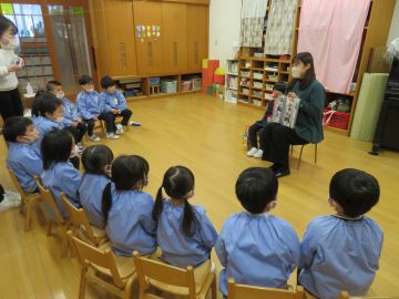 園長先生から干支のお話をしていただきました。ね・うし・とら・・・・。皆よく知っていました。すごい。