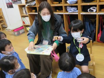 保育室に戻ってからは、お子さんが小さかった時のお話をしていただいたり、年長さんはお子さんの名前の由来をお話いただきました。