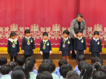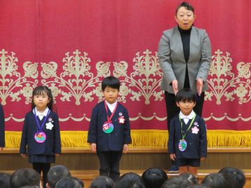 園長先生からペンダントをかけていただき、皆で「誕生日」の歌をうたってお祝いしました。