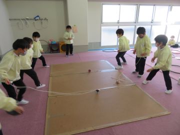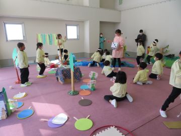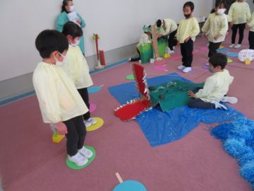 園では年に数回研究保育を行っています。今回はきく組の保育を見せていただきました。
