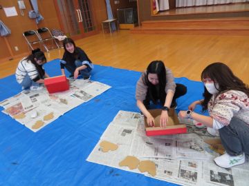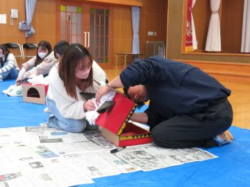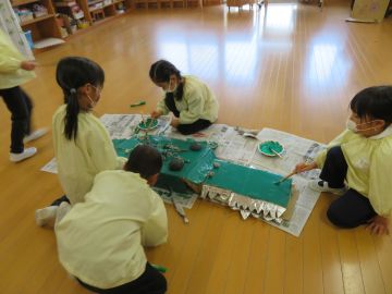 協力して作ったり、思い思いに色付けや顔を描いたりすることを楽しみ、みんな違った個性ある獅子舞ができました。