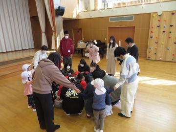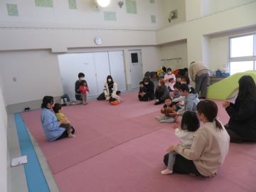 お家の方も一緒に「むっくりくまさん」をし、追いかけたり逃げたりすることを楽しみました。