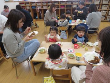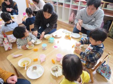 お家ではなかなか食べない野菜をたくさん食べる姿やお箸に挑戦し始める姿もみていただけました。