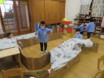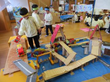 作ったり遊んだり考えたり…友だちと一緒に時間をかけて作ってきた遊びです。年下のこども達にも遊びのいい刺激になりました。