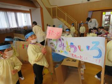 お客さんが来る!とワクワクいっぱいの年長さん。しっかり準備ができたようです。