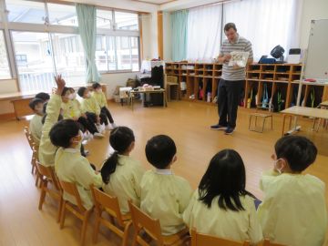 1年間パーカー先生・はるな先生にお越しいただき「えいごをあそぼう」を楽しんできた年長さん。