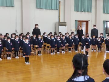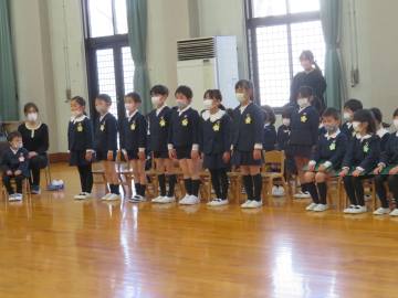 年長さんは1人ひとりお辞儀をして入場し、全員が揃いました。