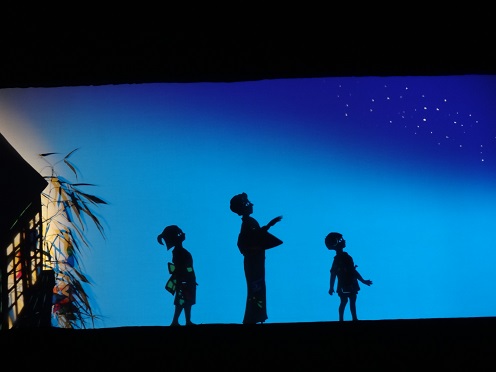 その後、先生たちの演じる影絵で七夕伝説について触れました。きれいなシルエットの世界を、とても静かに熱心に見ていた子どもたちでした。