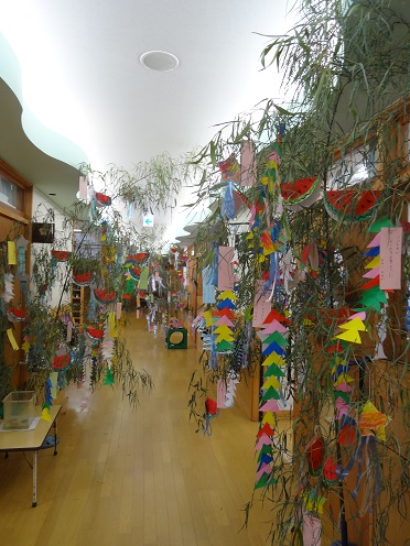 作っていただいた笹を遊戯室に飾り、集会にも参加していただきました。