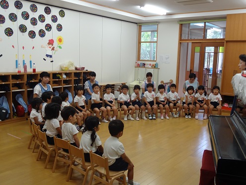 園長先生から昔大きな地震があった話をお聞きしました。園児は、東日本大震災を知らない子供たちになってきました。