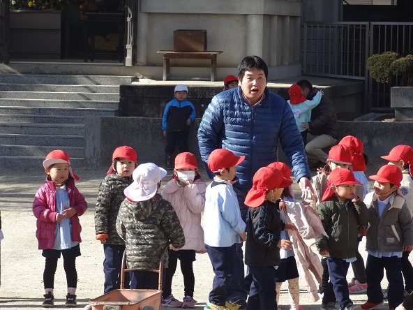 新たな保育教諭? お友だちのお父さんに遊んでもらう子どもたち。
