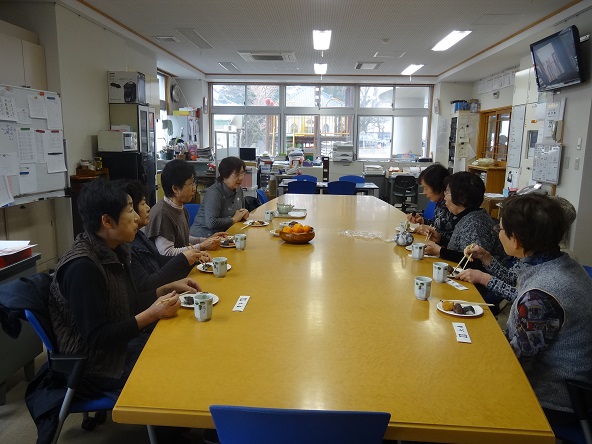 地域公開行事のお餅つきは、橋北地区の方々も来てくださいました。つきたてのお餅をいただきながら、お話も弾んでいました。