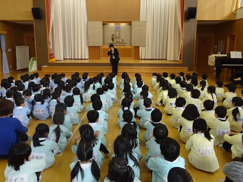 園長先生のお話を通し、長かった2学期を振り返りました。まだプール遊びに夢中になっていた8月から5ヶ月。いろんなことがあり、みんな大きくなっていますね。