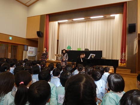 地元の音楽家さん達が園児に楽しい音楽を届けてくれました。